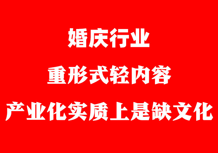 在婚庆行业,婚庆策划普遍缺乏创意和文化品位,婚礼流程“重形式、轻内容”也是个突出问题。庄园婚礼、宫廷式婚礼、钻石级婚礼等动辄耗费几十万元甚至上百万元,极尽奢华排场之能事。“现在的婚礼内涵缺失、盲目攀比的现象很普遍。”汤永青表示。