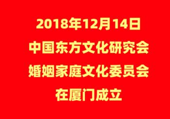 2018年12月16日,在厦门国际会展中心,由中国东方文化研究会婚姻家庭文化委员会、中国东方文化研究会婚俗文化专业委员会联合厦门市婚庆行业协会、厦门市百视文化传媒举办了“2018年首届中国•厦门婚庆旅游产业博览会”。 同期,中国东方文化研究会婚姻家庭文化委员会成立。中国东方文...